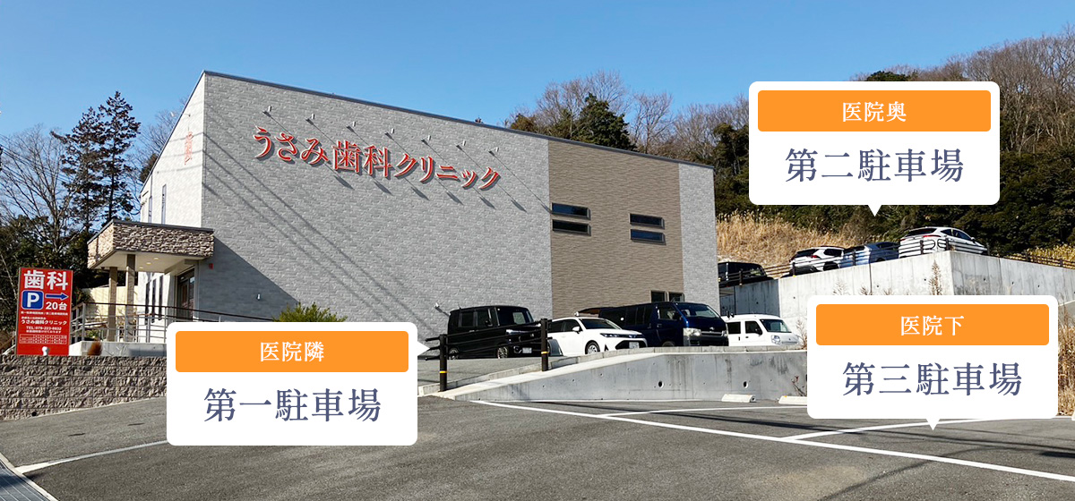 安心の広々駐車場25台完備医院隣に第一駐車場医院奥に第二駐車場 医院下に第三駐車場